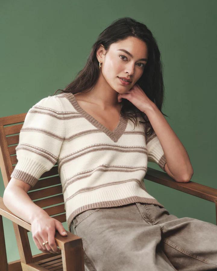 Add a little charm to your fall wardrobe with our Hope Cashblend Short Sleeve Sweater. It's made from our signature Cashblend fabrication that has a touch of cashmere. Crafted with feminine puff sleeves, detailed with elevated rib trims and finished with a classic stripe pattern. Top it over your favorite pants.