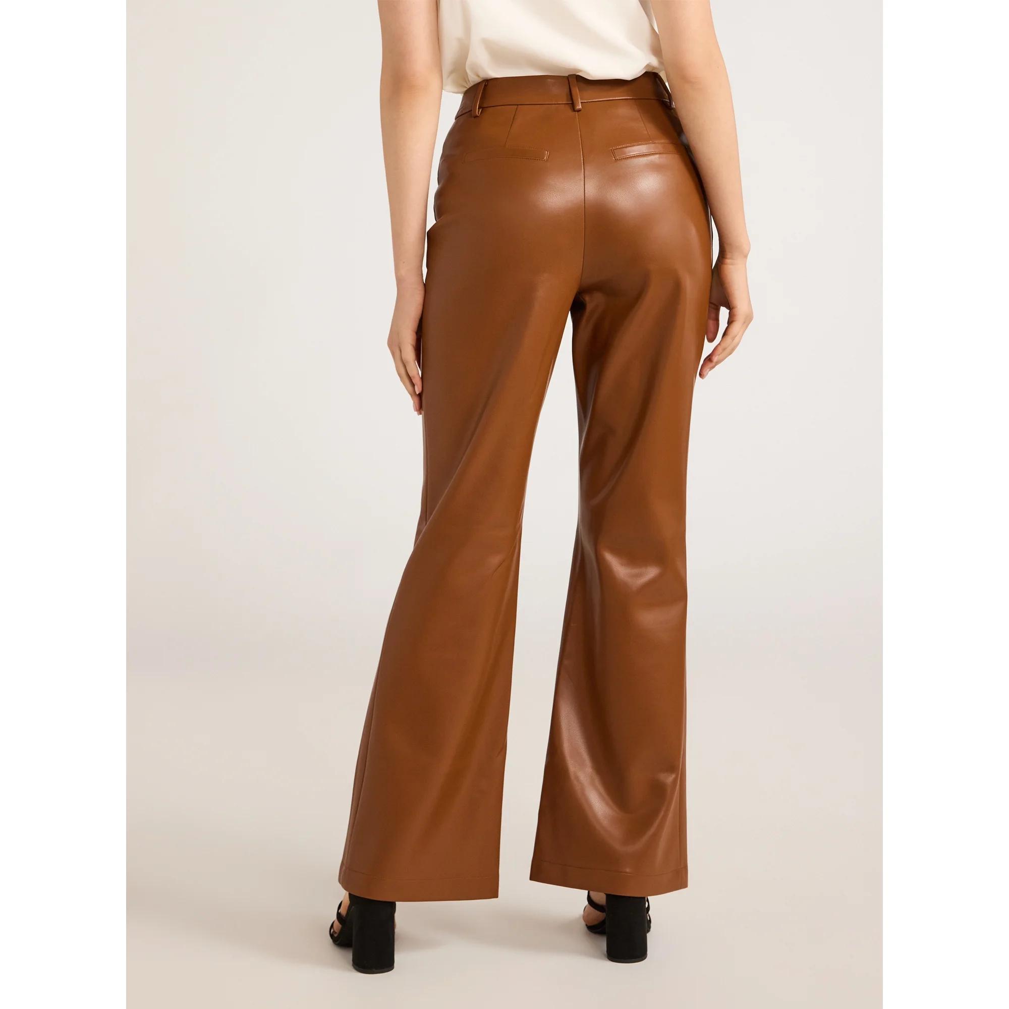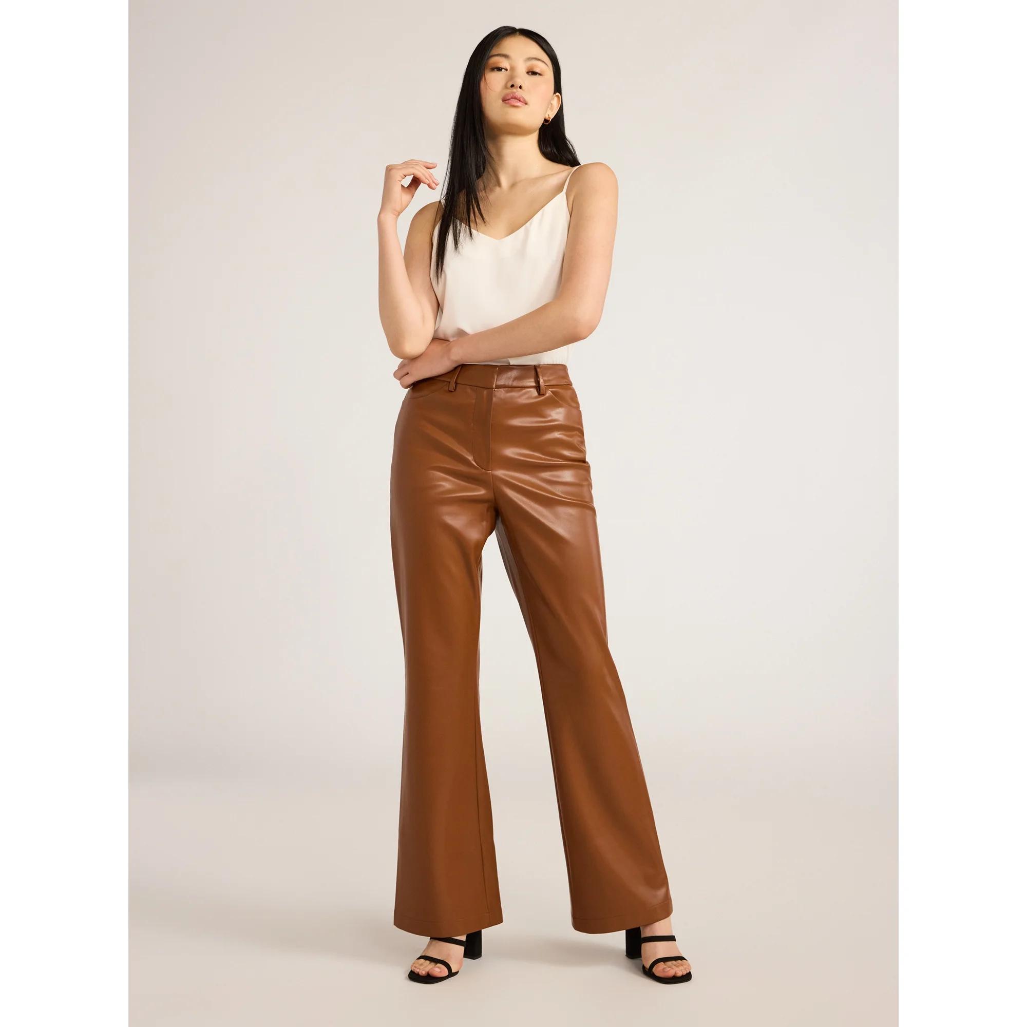 If you’ve been on the hunt for the perfect pair of pants for memorable nights out…you’ve found them. These chic Scoop Faux Leather Trousers feature a flattering high waist and a stylish bootcut flare hem, adding a touch of retro flair to your look. Crafted from sleek faux leather, they offer a bold and edgy vibe perfect for those long-awaited plans or elevating your everyday style. Pair these faux leather pants with our Crewneck Bodysuit (sold separately) for a fashion-forward statement that’s sure to impress. Only at Walmart.