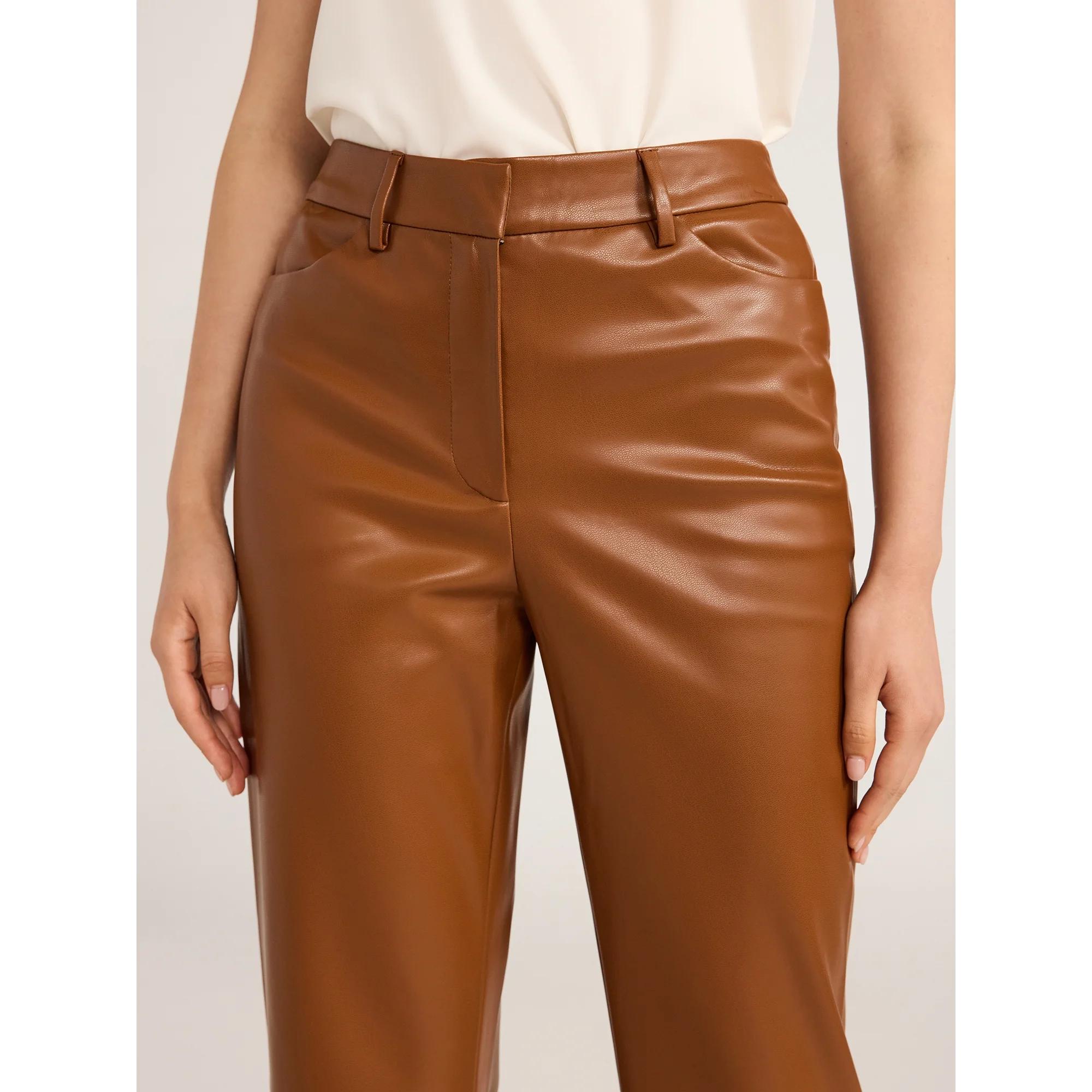Scoop Women's Ultimate Faux Leather High Waisted Trouser Pants, 32 Inseam