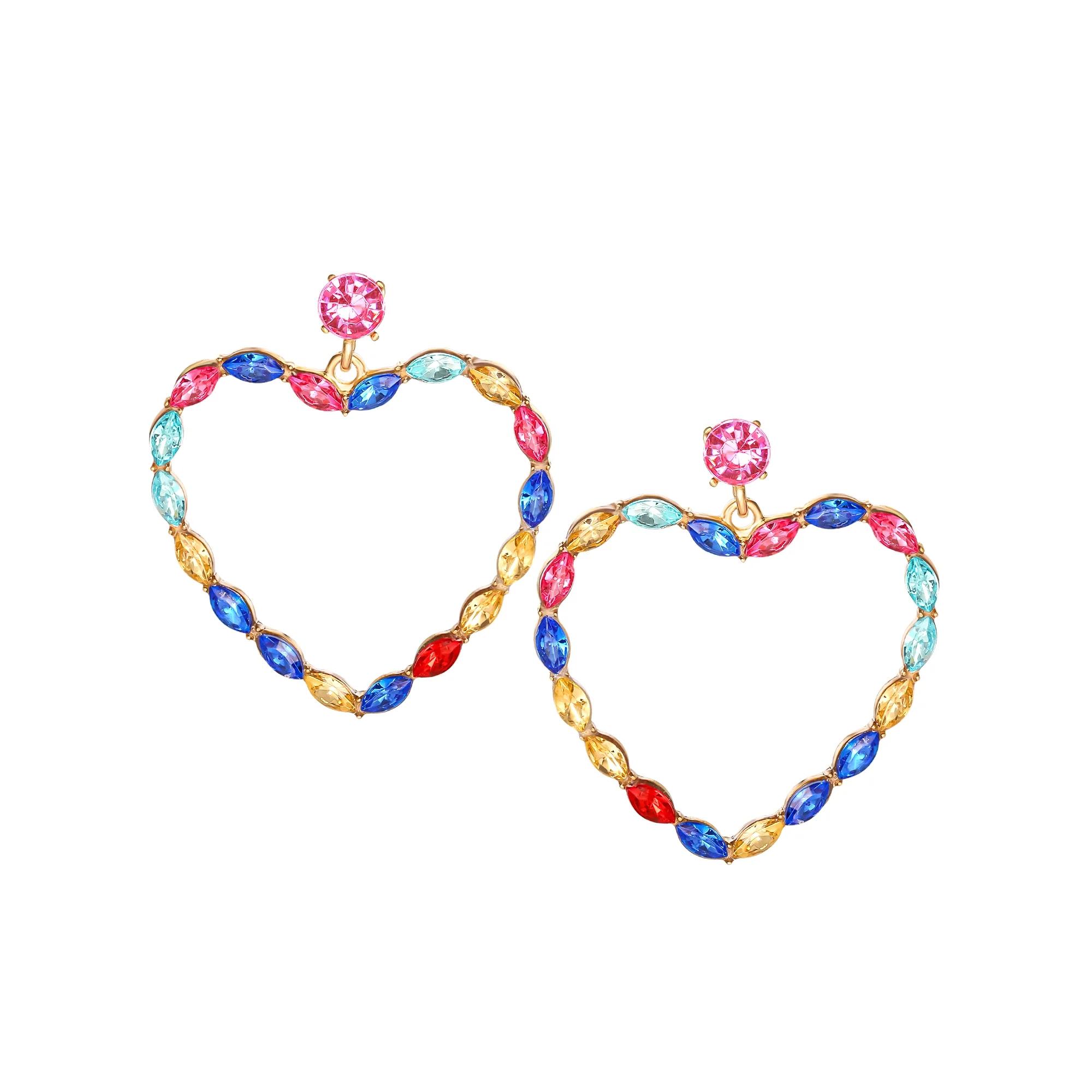 Jessica Simpson Heart Drop Earring with Multi-color Stones