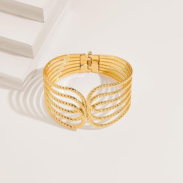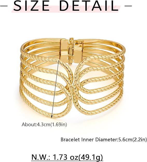 Statement Multi-layer Wire Cuff Bracelet: Create a bold statement style with the multi-layer twist wire cuff bracelets. These extra wide hollow out bangle bracelet is a bold statement piece that will surely catch everyone's attention. Disclosure: We are a participant in the Amazon Services LLC Associates Program, an affiliate advertising program designed to provide a means for us to earn fees by linking to Amazon.com and Affiliate sites.