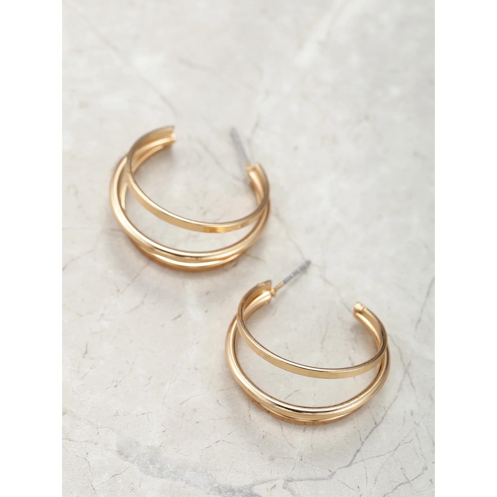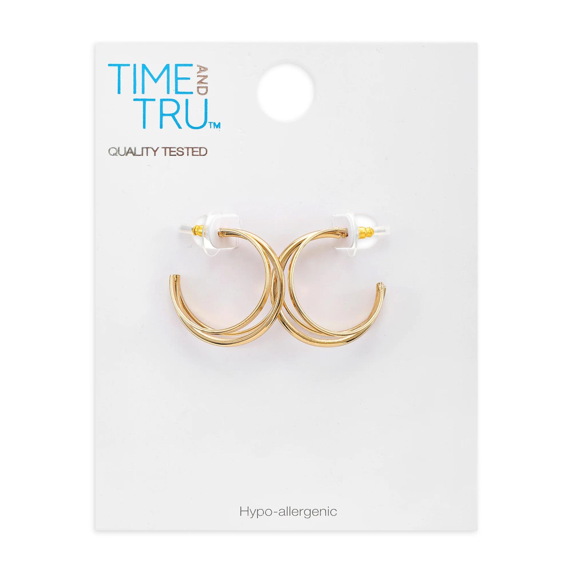 Add the finishing touch to any outfit with these layered gold-tone hoop earrings by Time and Tru. Pair these pretty earrings with anything from a simple t-shirt and jeans to your favorite date-night outfit.