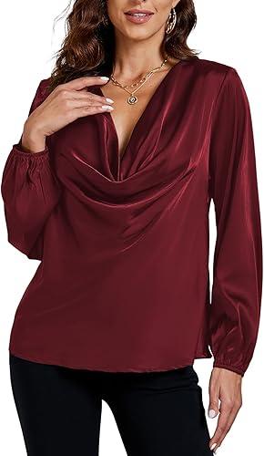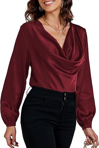 Satin silky, cowl neck, ruched front, solid color, soft fabric, pull on blouse for women and girls. Disclosure: We are a participant in the Amazon Services LLC Associates Program, an affiliate advertising program designed to provide a means for us to earn fees by linking to Amazon.com and Affiliate sites.
