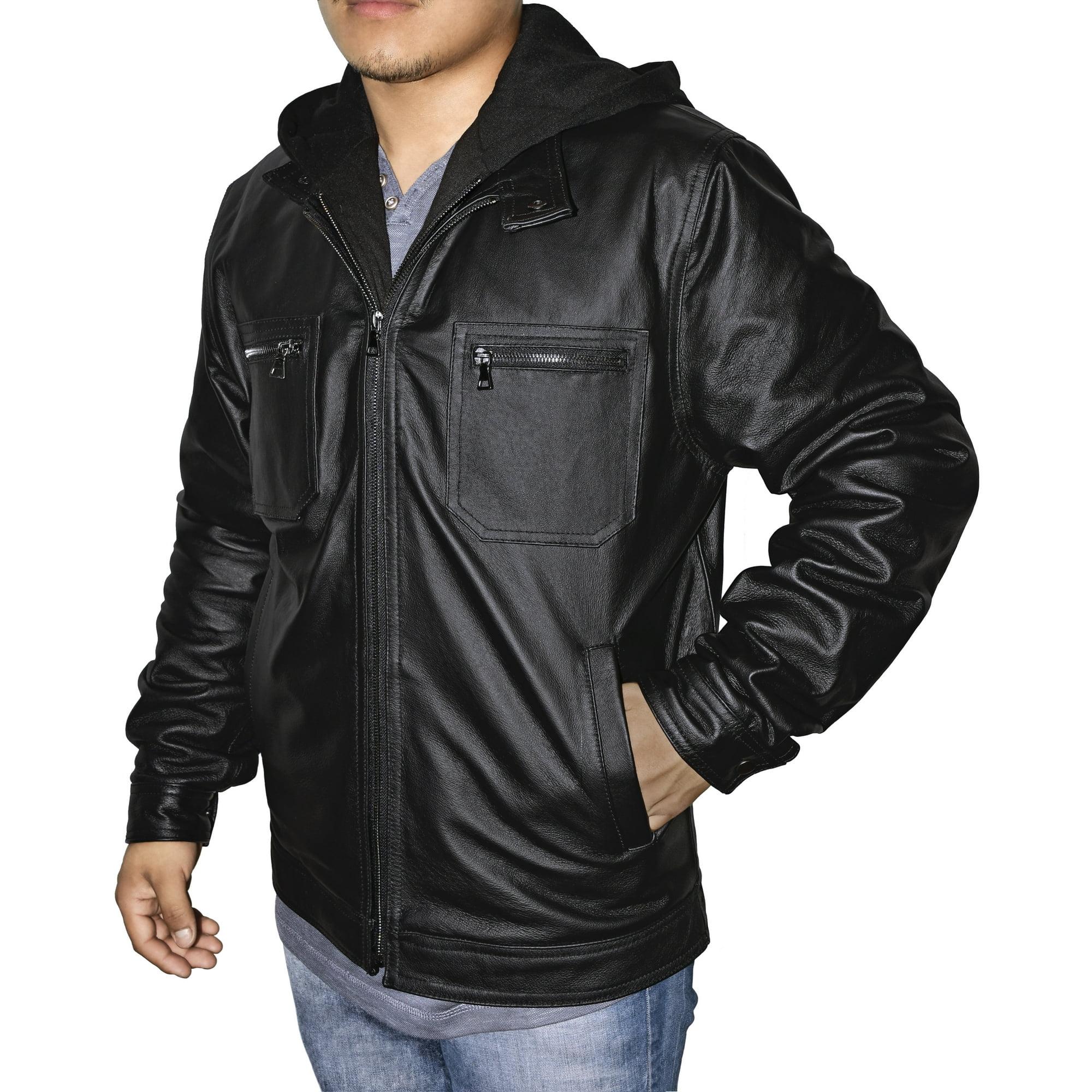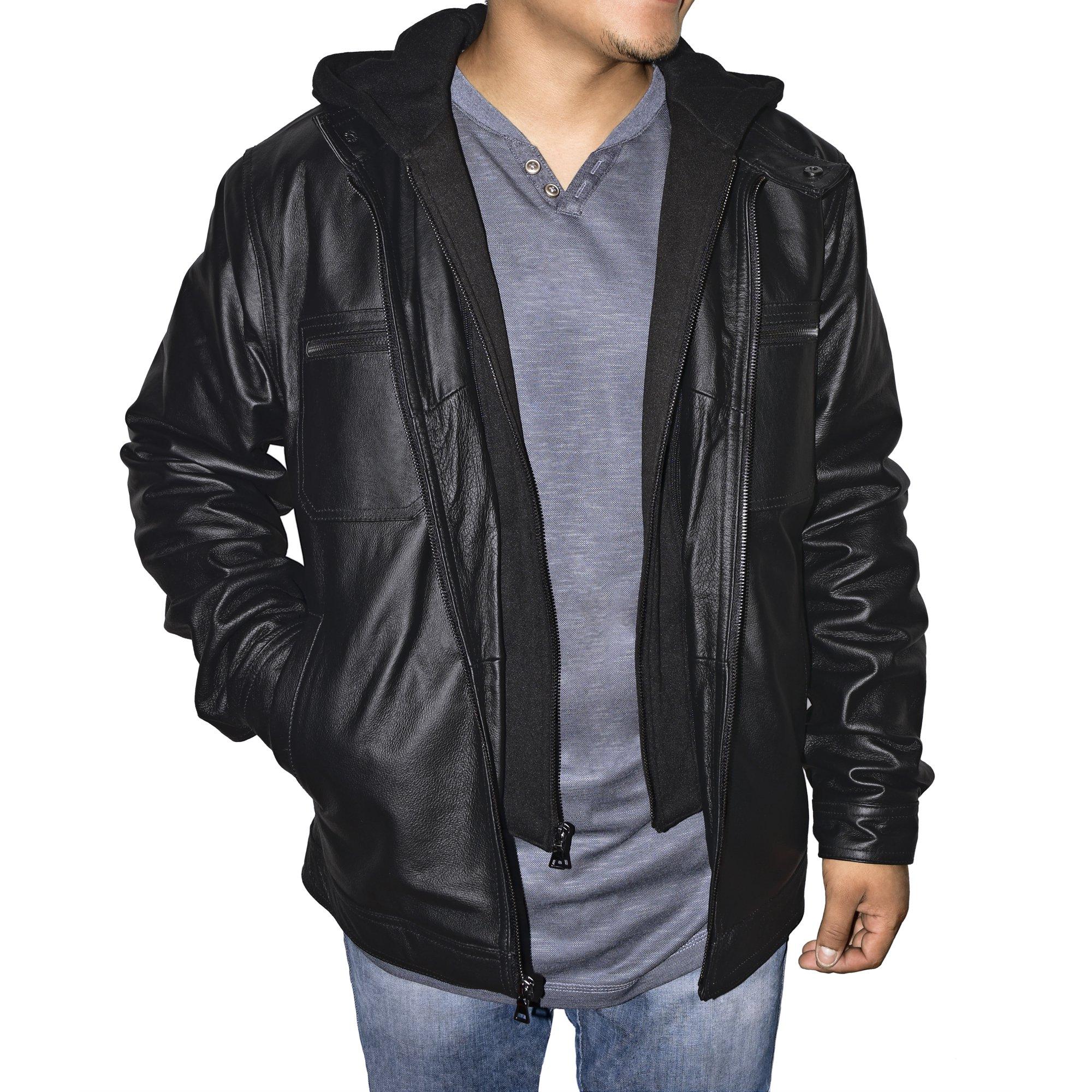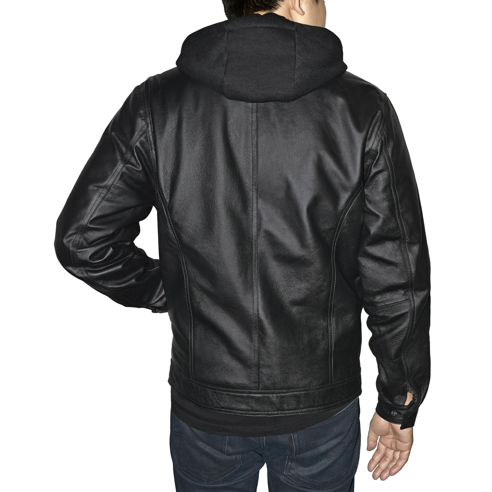 Victory Outfitters Men's Zip Out Removable Hood Genuine Leather Jacket - Black - L