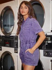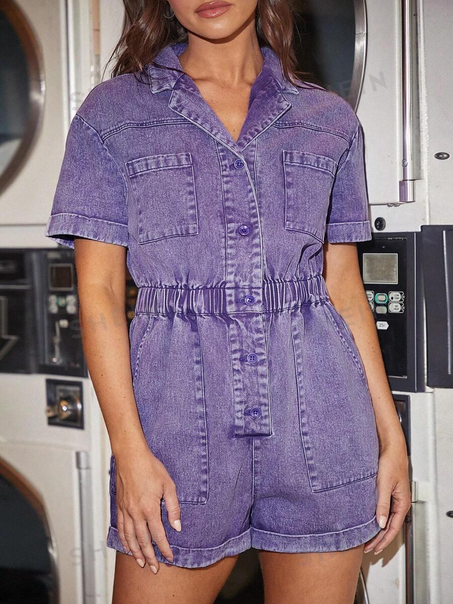 Forever 21 Women's Single-Breasted Cinched Waist Short Sleeve Jumpsuit For Fashionable Summer Look