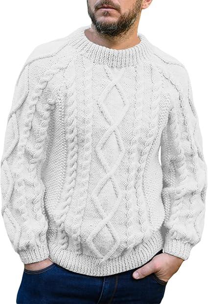 Mens Cable Knit Pullover Sweater Winter Crew Neck Long Sleeve Ribbed Vintage Sweaters