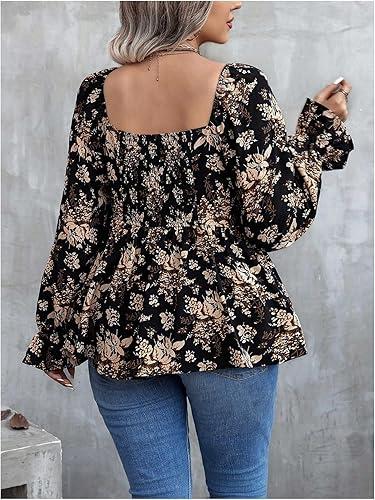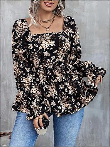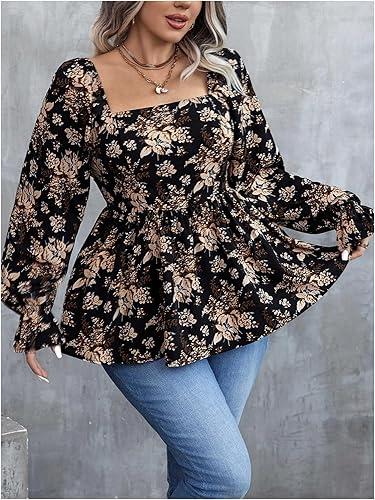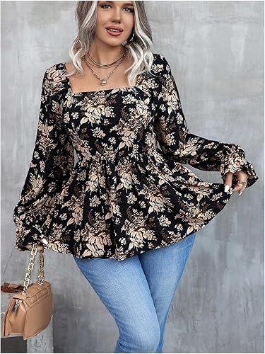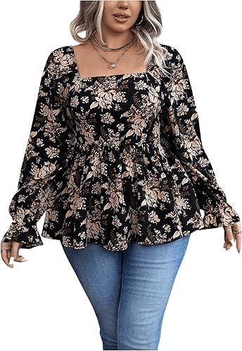 plus size blouse top features with floral print, square neck, flounce long sleeve, ruffle hem. Disclosure: We are a participant in the Amazon Services LLC Associates Program, an affiliate advertising program designed to provide a means for us to earn fees by linking to Amazon.com and Affiliate sites.