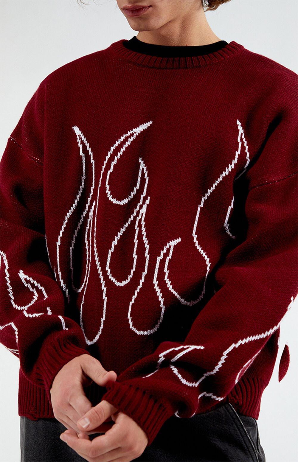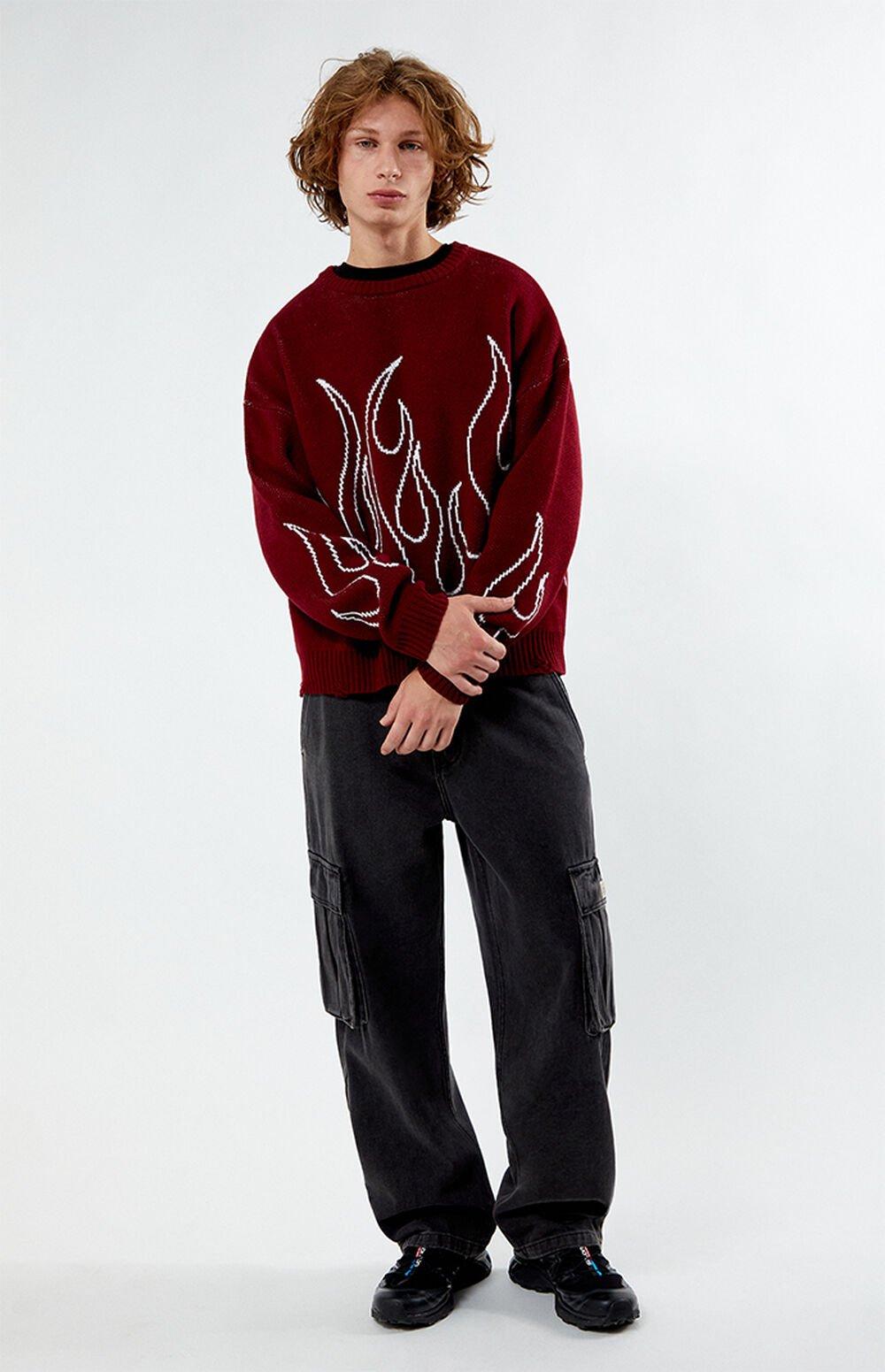 Ignite your style with the Flame Cropped Sweater from PacSun, featuring striking flame graphics. This trendy, slightly cropped sweater offers a bold look with a comfortable fit, perfect for making a statement.